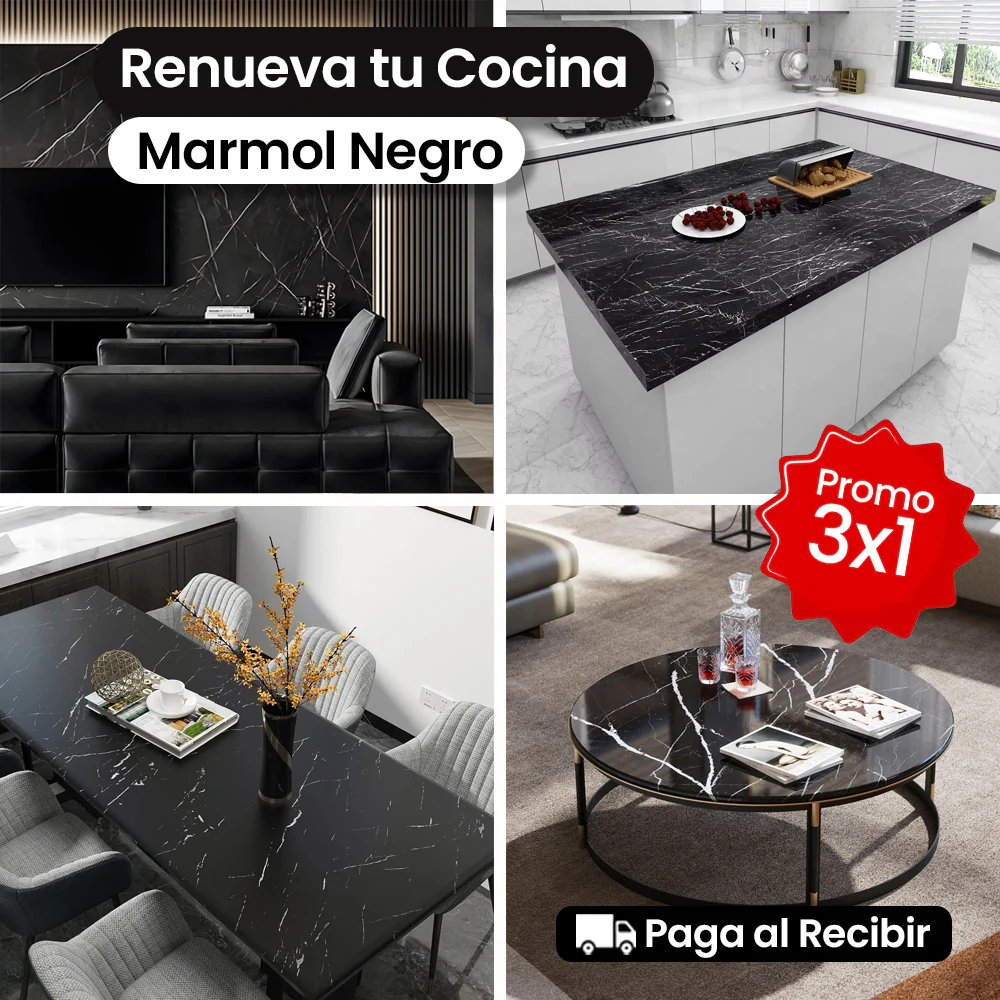 Imagina tus muebles, encimeras y paredes con un acabado elegante de mármol blanco, negro.